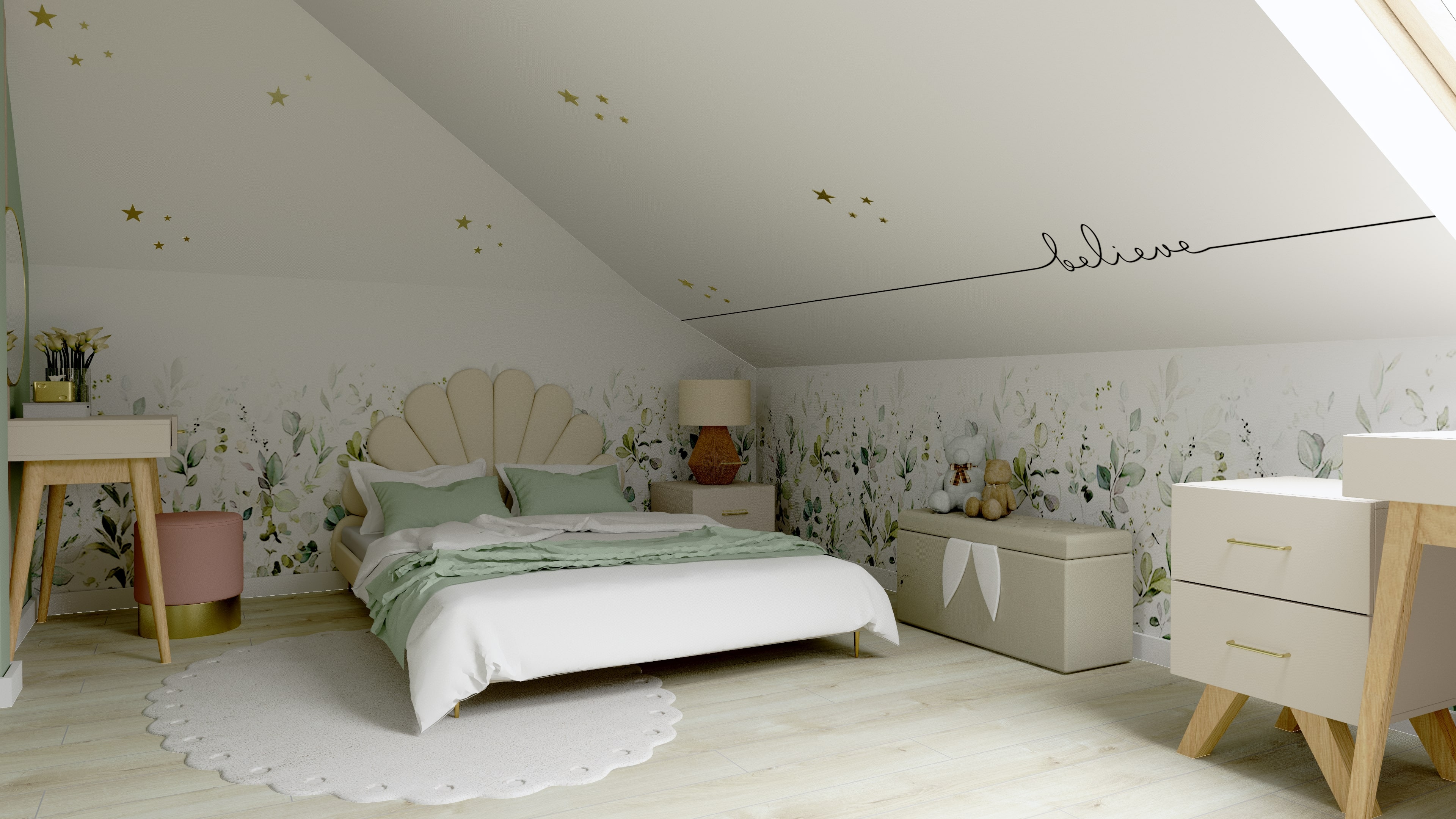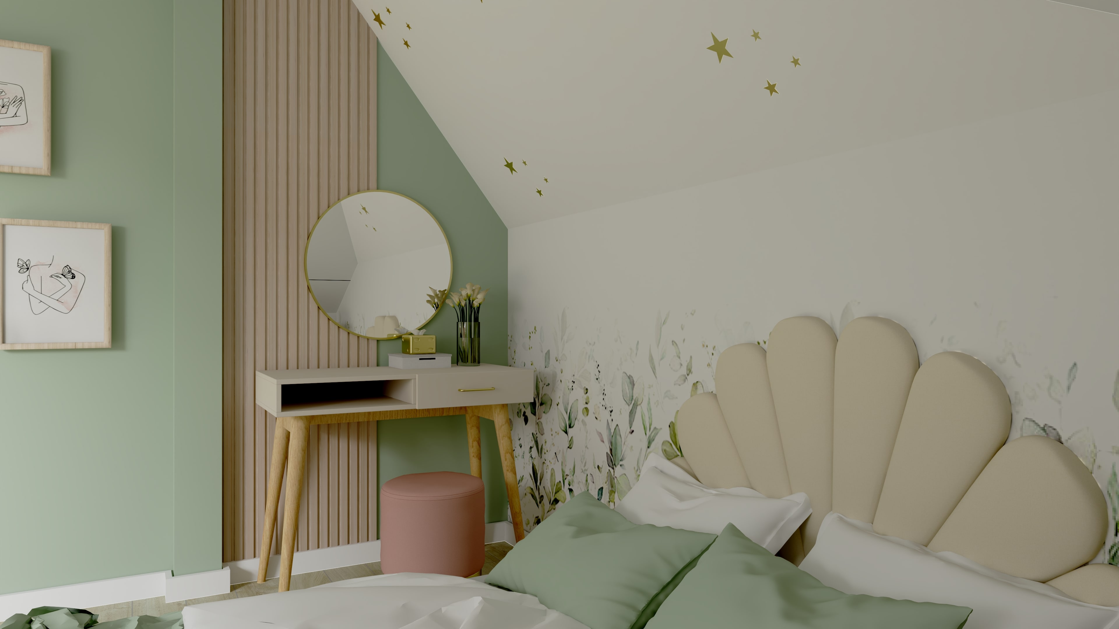 Zielono-różowy pokój Jagody – Projekt pokoju dla dziecka pełen uroku