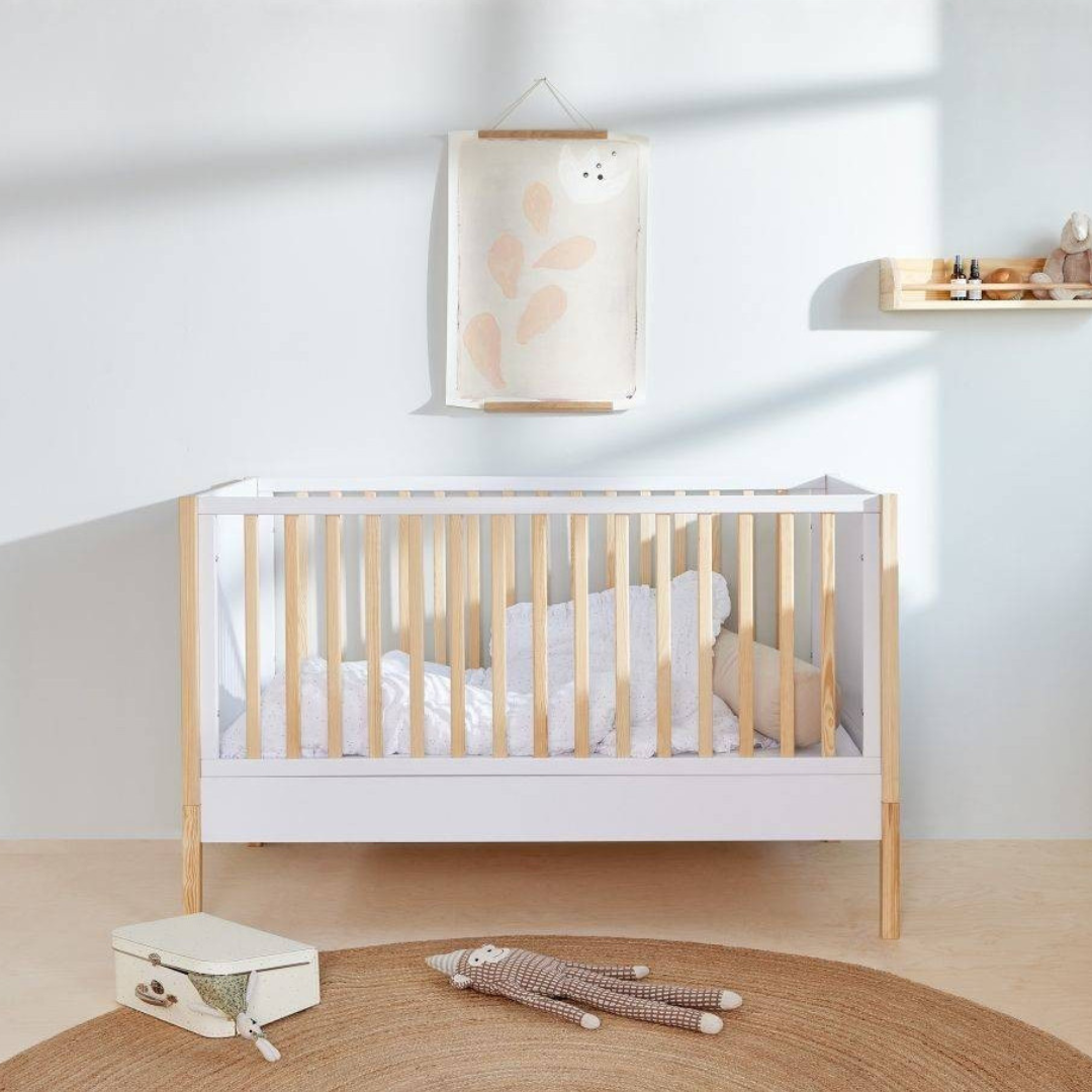 - trzy wyjmowane szczebelki w jednej z ramek łóżeczka umożliwiające swobodne wchodzenie i wychodzenie z łóżeczka,